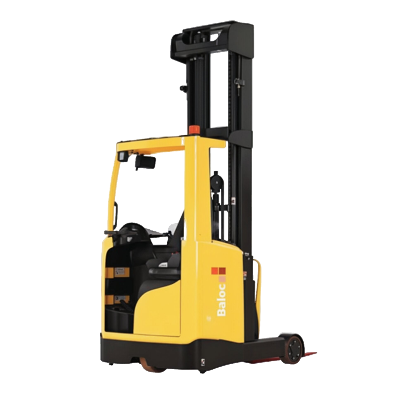 Empilhadeira retrátil para centros de distribuição e estoques verticalizados. Eleva até 10.500 mm mantendo estabilidade e opera em corredores estreitos. Indicada para picking em altura e organização de pallets em porta-paletes altos.